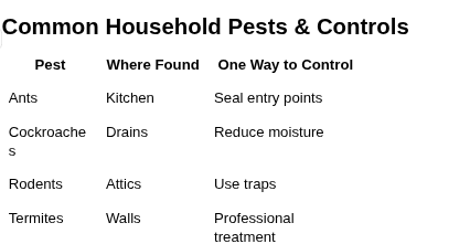This table answers what is one pest in or around your home give one way to control this pest in a simple way.